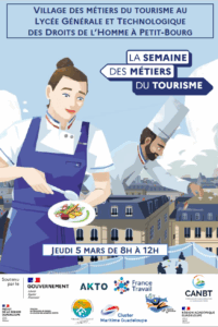 Dans le cadre de la Semaine des Métiers du Tourisme, un Village des Métiers du Tourisme se tiendra le jeudi 5 mars 2026 de 8h à 12h au LGT des Droits de l’Homme à Petit-Bourg.